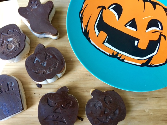 I should probably mention that because I found a Halloween mold, I decided to use that instead of a pan. I love the spooky shapes and really I love any chance to celebrate Halloween in a not-so-scary way. I don’t do scary. Give me eery-shaped Naniamo Bars and Snoopy and The Great Pumpkin any day!