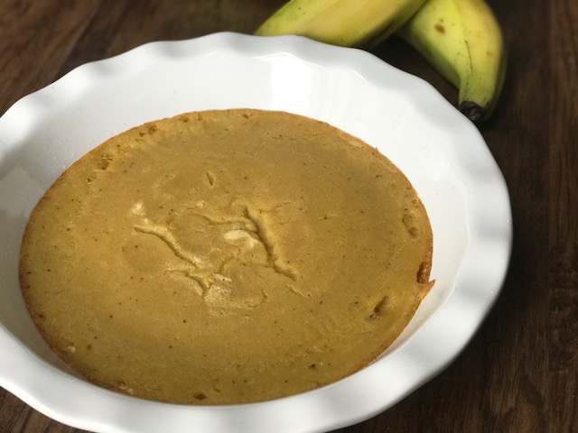 2. grease an 8″ pie pan with 1 tablespoon coconut oil (warmed)