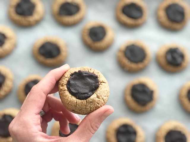 Some of my favorite cookies come from my grandmothers. And while I love both my grandmothers dearly, the cookies they made don’t quite fit the food guidelines I follow now. But rather than just tossing these recipes (and memories) I’ve chosen to “hack” these recipes to make them better for me like these German Inspired Thumbprint Cookies.